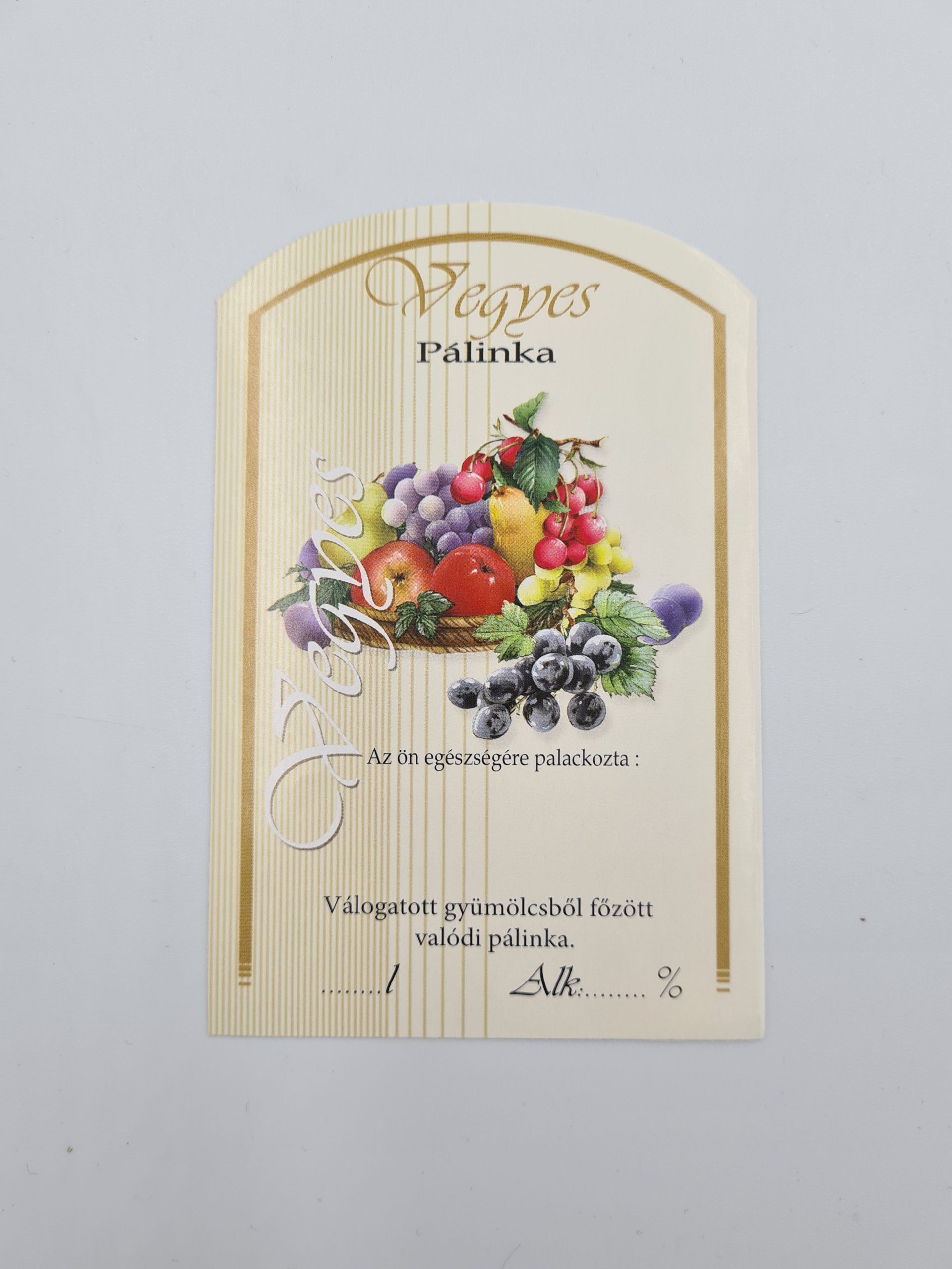 Öntapadós boltíves pálinkás címke – VegyesÖntapadós boltíves pálinkás címke – Vegyes