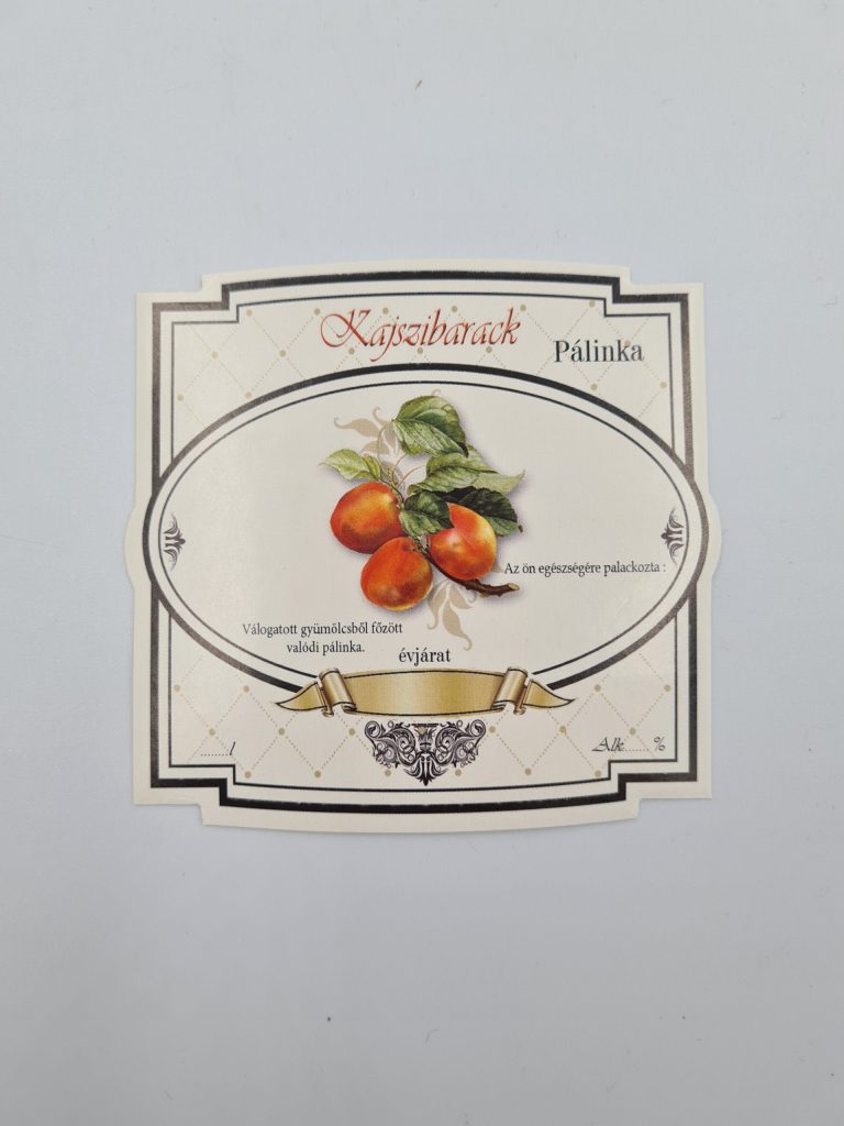 Öntapadós kocka pálinkás címke – Kajszibarack