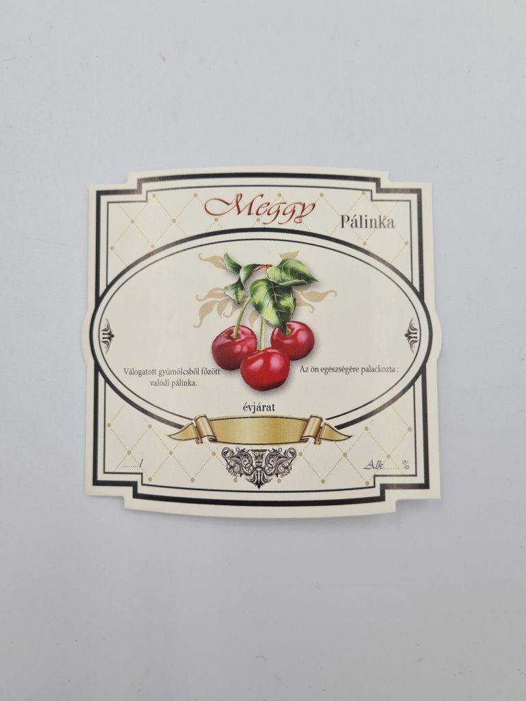 Öntapadós kocka pálinkás címke – Meggy