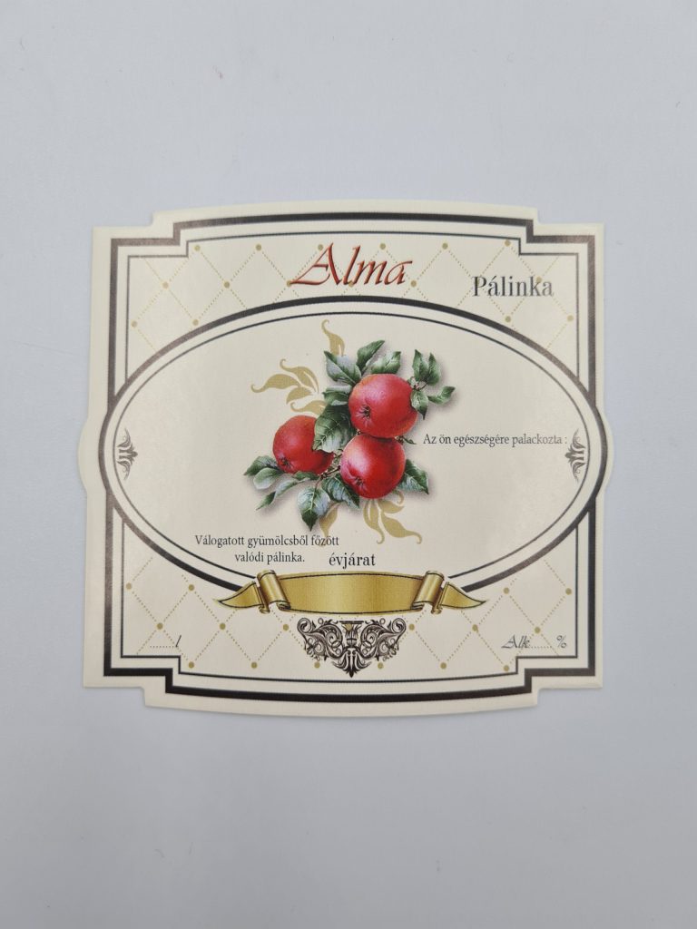 Öntapadós kocka pálinkás címke – Alma