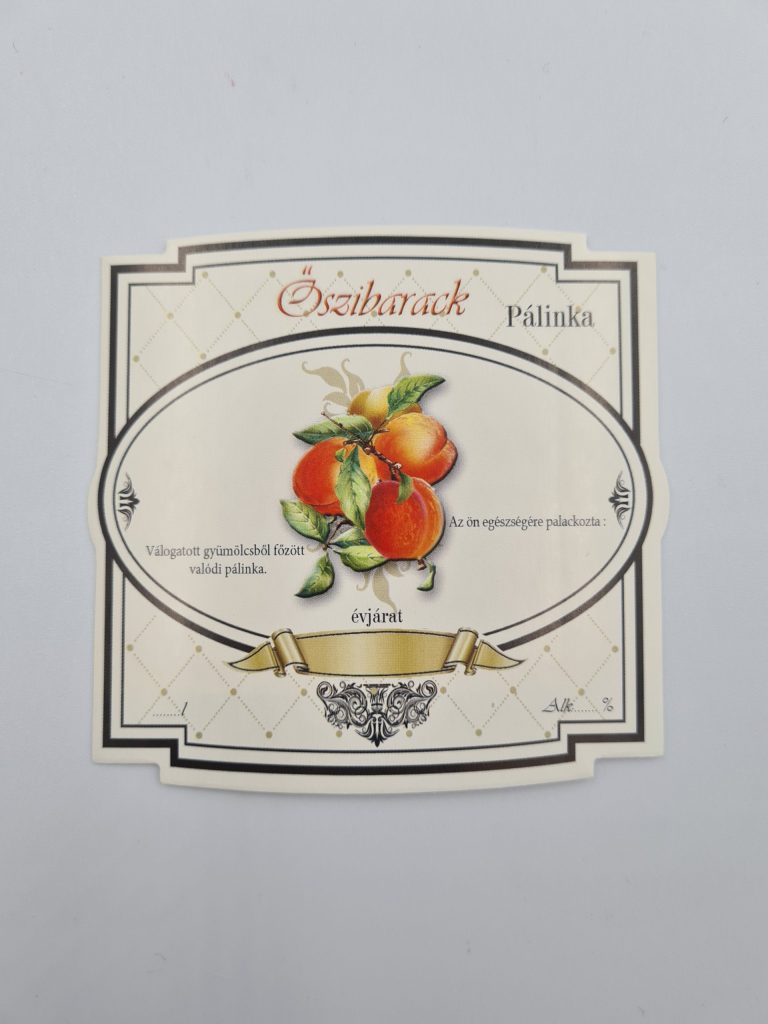 Öntapadós kocka pálinkás címke – Őszibarack