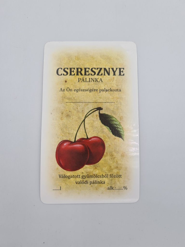 Öntapadós téglalap pálinkás címke – Cseresznye